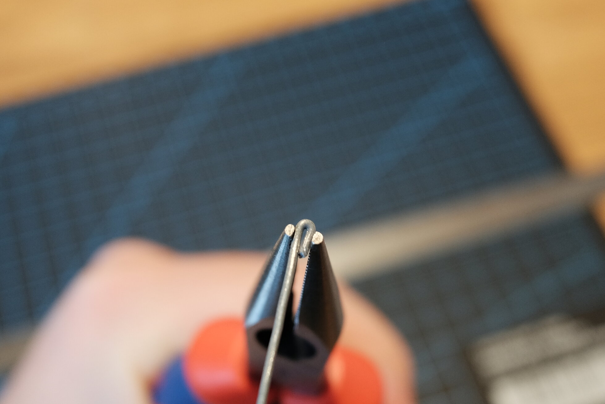 Der Draht sollte eine Länge von ca. 15 cm und eine Dicke von 1 mm haben. Dünnerer Gartendraht geht auch, hält aber die Form nicht so gut. Mit einer Spitzzange biegt ihr die Spitzen um und drückt diese flach, damit sie nicht durch den Stoff stechen können.