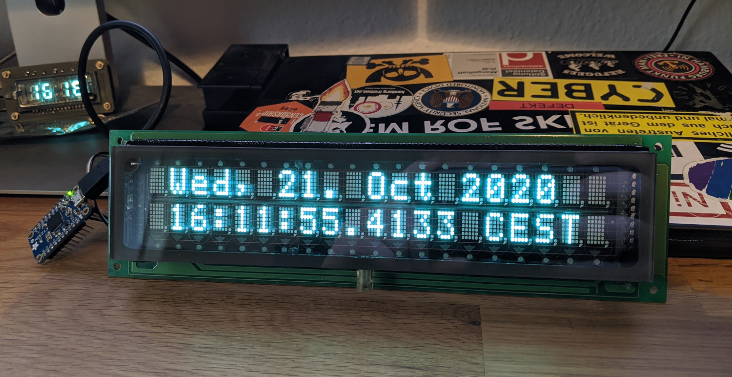 After finishing my own VFD clock project a while ago, I now bought a ready-made module from Noritake Itron because I wanted to take a look how they do it – especially the filament supply.