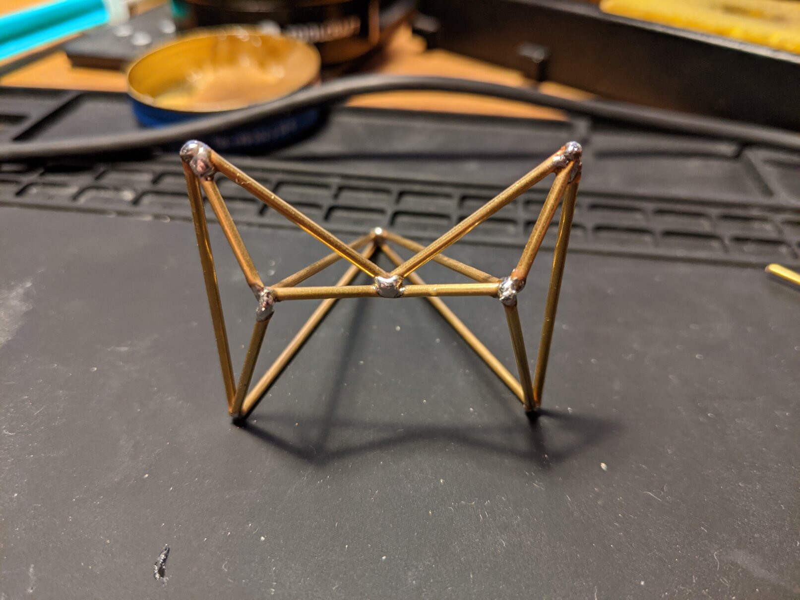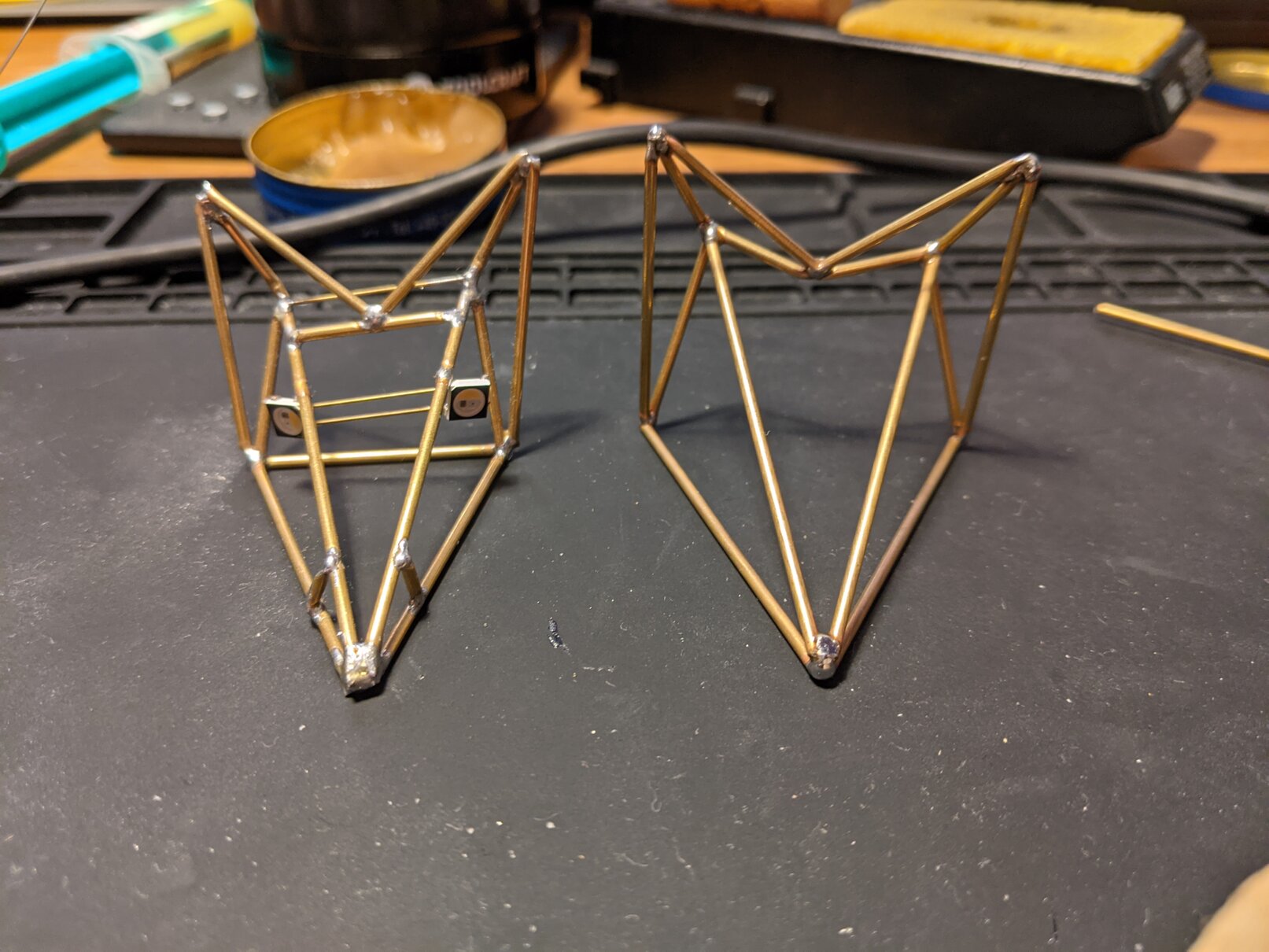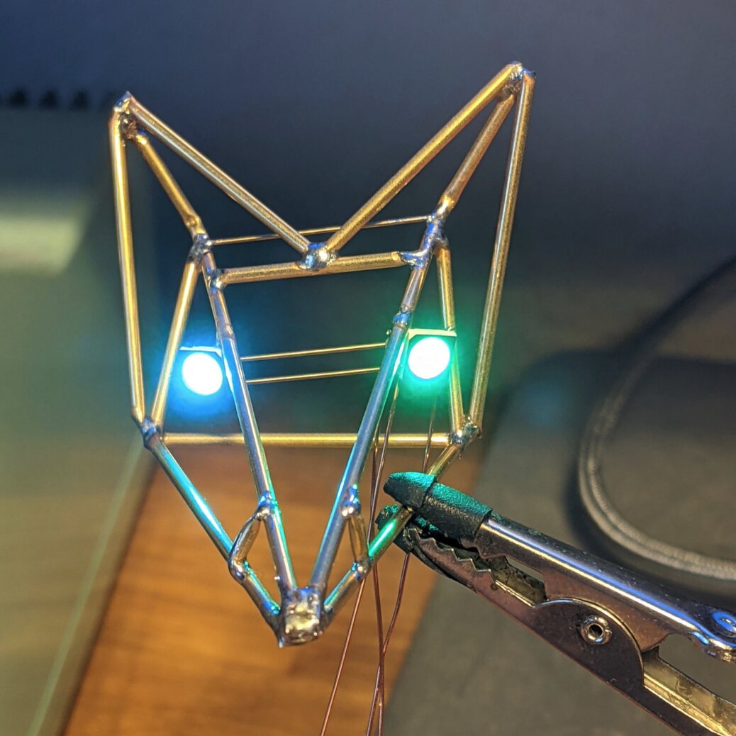 This is just a simple post about some artwork I did as a present recently. I wanted to try my hand at freeforming solder-art, so I got some brass rods and tried to form a foxes head.