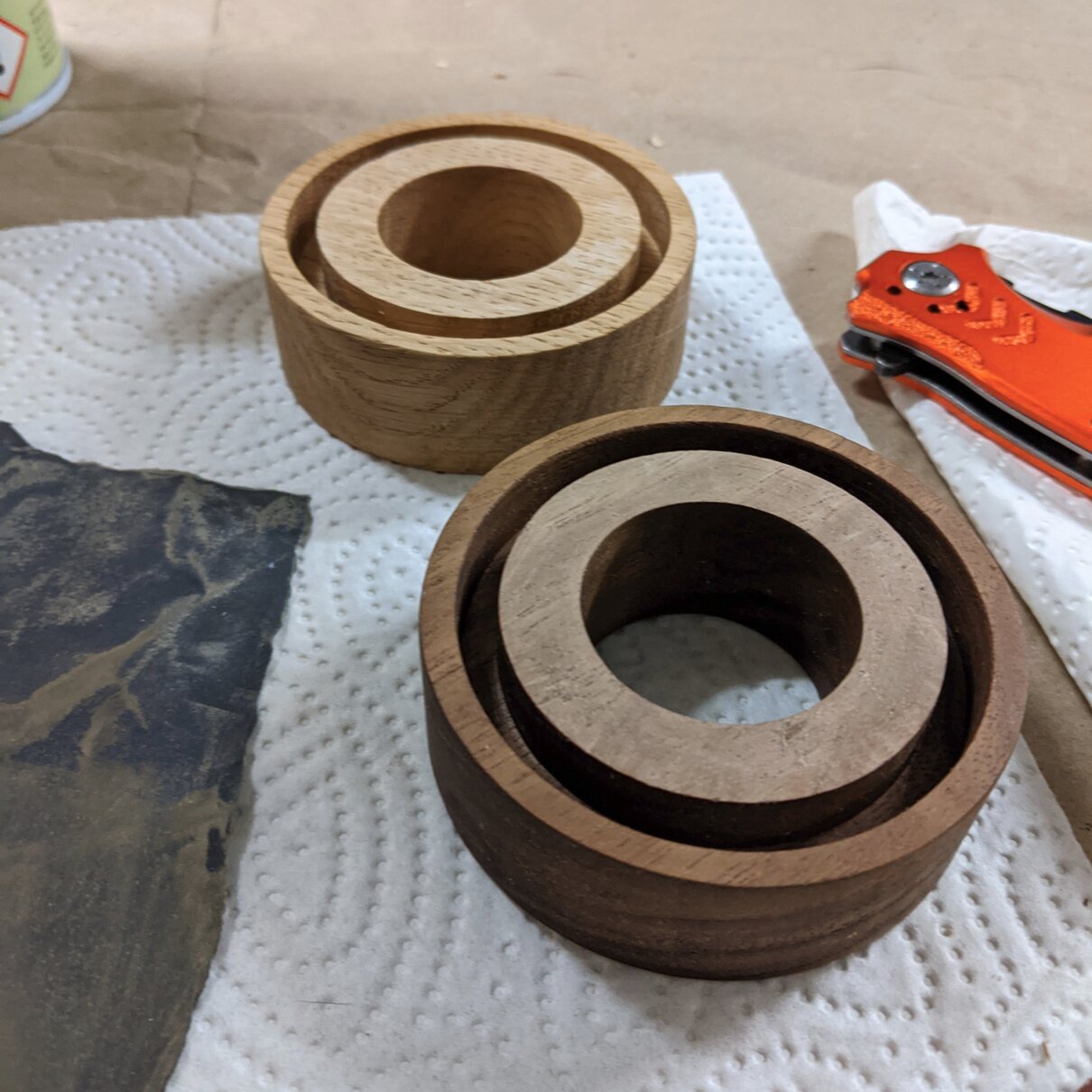 I bought a small glass dome at idee and my roommate was nice enough to mill me a replacement base from a piece of walnut wood because the MDF base looked terrible.